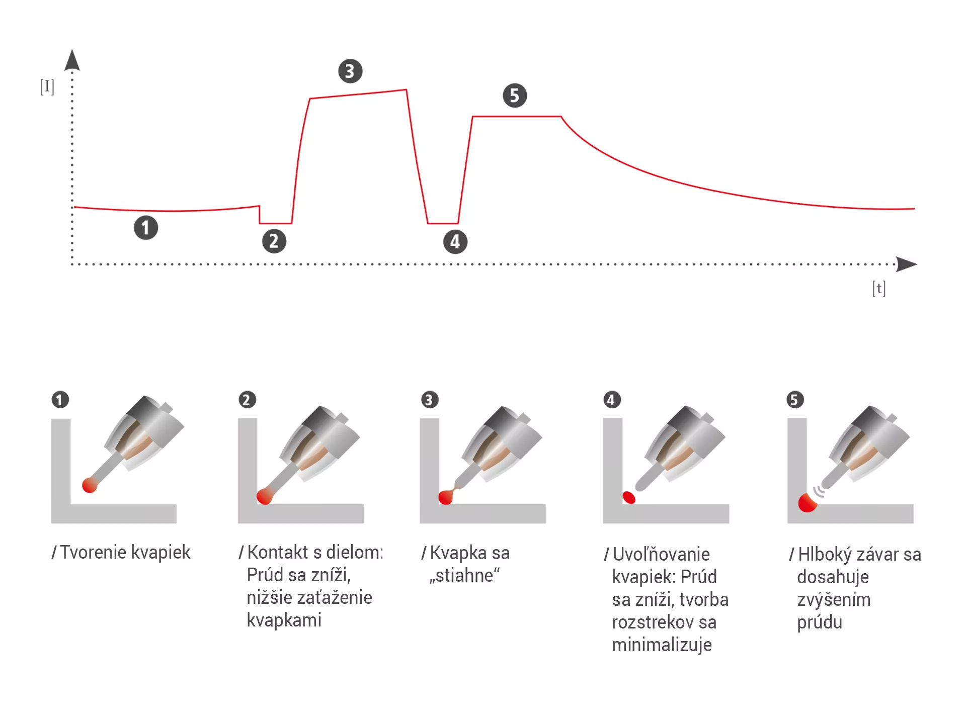 Skrat sa aktivuje na nízkej úrovni prúdu Výsledok: stabilný zvárací proces.